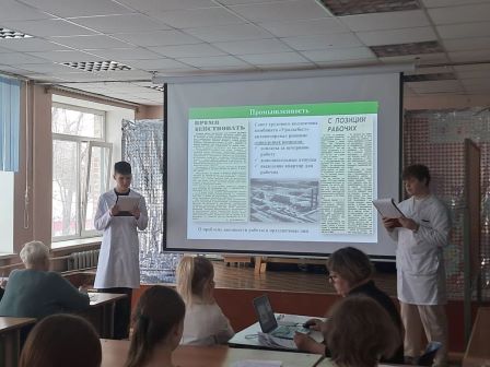 Инспектора Носова Юлия Сергеевна и Герасимова Юлия Анатольевна ознакомили студентов с текущей ситуацией на местном и региональном рынке труда, подробнее остановились на вакансиях по специальностям, которую осваивают студенты.