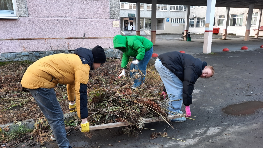 - 18.09 на субботнике «Повышение уровня комфортности окружающей среды» и « Приколледжная клумба» во дворе колледжа приняли участие 23 человека - студенты специальности «Лечебное дело» - 190 Ф. Преподаватель: Соловьева Наталья Егоровна