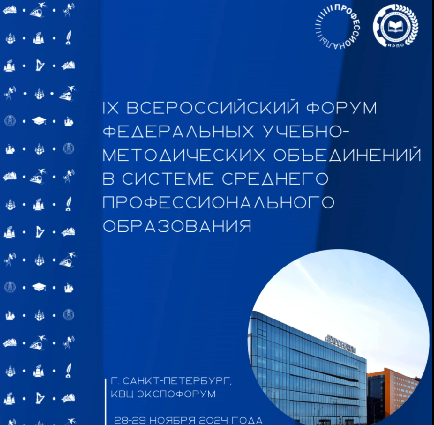 В рамках деловой программы финала по профессиональному мастерству «Профессионалы» (26-30 ноября 2024 года) состоится IX Всероссийский Форум федерльных учебно-методических объединений в системе среднего профессионального образования.