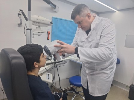 Оптометрист и офтальмолог проверили зрение у 17 детей из диспансерной группы в мобильном офтальмологическом комплексе СОМК. Специалисты выдали юным пациентам индивидуальные рекомендации. В рамках проекта «Российский Красный Крест: помощь рядом», который поддержан Свердловским областным Союзом промышленников и предпринимателей и реализуется на средства, собранные на благотворительном вечере «Екатерининская Ассамблея», активисты РКК навестили семьи, члены которых участвуют в специальной военной операции, и вручили им гуманитарную помощь.