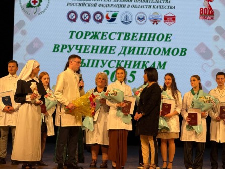На торжественной церемонии особо отметили достижения выпускников, проявивших себя во Всероссийских конкурсах профмастерства, волонтёрском движении и научной деятельности. Из рук министра здравоохранения дипломы получили 30 лучших выпускников. Среди них — серебряный призёр Всероссийского конкурса профмастерства «Профессионалы» Екатерина Швецова.
