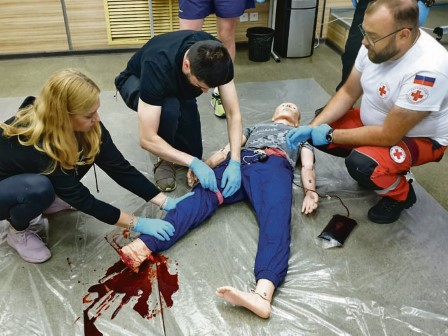 «На занятия советую приходить в одежде, которую не жалко испачкать, – добавил Даниил Шестаков. – У нас обучение максимально приближено к реальным условиям: из ран будет вытекать искусственная кровь, вам придется опускаться на колени, переворачивать и перемещать условных пострадавших. В общем, придется потрудиться и попотеть».