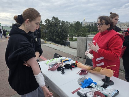 Всемирный день оказания первой помощи отметили 13 сентября в центре Екатеринбурга тематическим фестивалем. Горожан в формате мастер-классов научили проводить сердечно-лёгочную реанимацию, правильно останавливать массивное наружное кровотечение, накладывать повязки и шины при переломах конечностей. Инициаторами просветительских активностей выступили Свердловский областной медицинский колледж, региональное отделение Российского Красного Креста, волонтеры-медики Среднего Урала и Всероссийский студенческий корпус спасателей. В первые часы работы добровольцев участниками полезных занятий стали почти 300 уральцев.«Умение каждого из нас оказывать первую помощь до прибытия служб спасения может сыграть решающую роль в судьбе пострадавшего. Правильные действия при несчастном случае, аварии или внезапном приступе болезни могут спасти чью-то жизнь. Цель нашей акции сегодня — дать горожанам проверенные знания и ликвидировать стереотипы о первой помощи. Мы не первый раз привлекаем внимание общественности к этой теме: за этот год силами добровольцев медколледжа и общественных организаций мы провели более 330 мастер-классов по первой помощи. Нашими участниками стали 15 тысяч маленьких и взрослых свердловчан из разных городов области», — рассказала директор СОМК, председатель Свердловского регионального отделения «Российский Красный Крест» Ирина Левина.