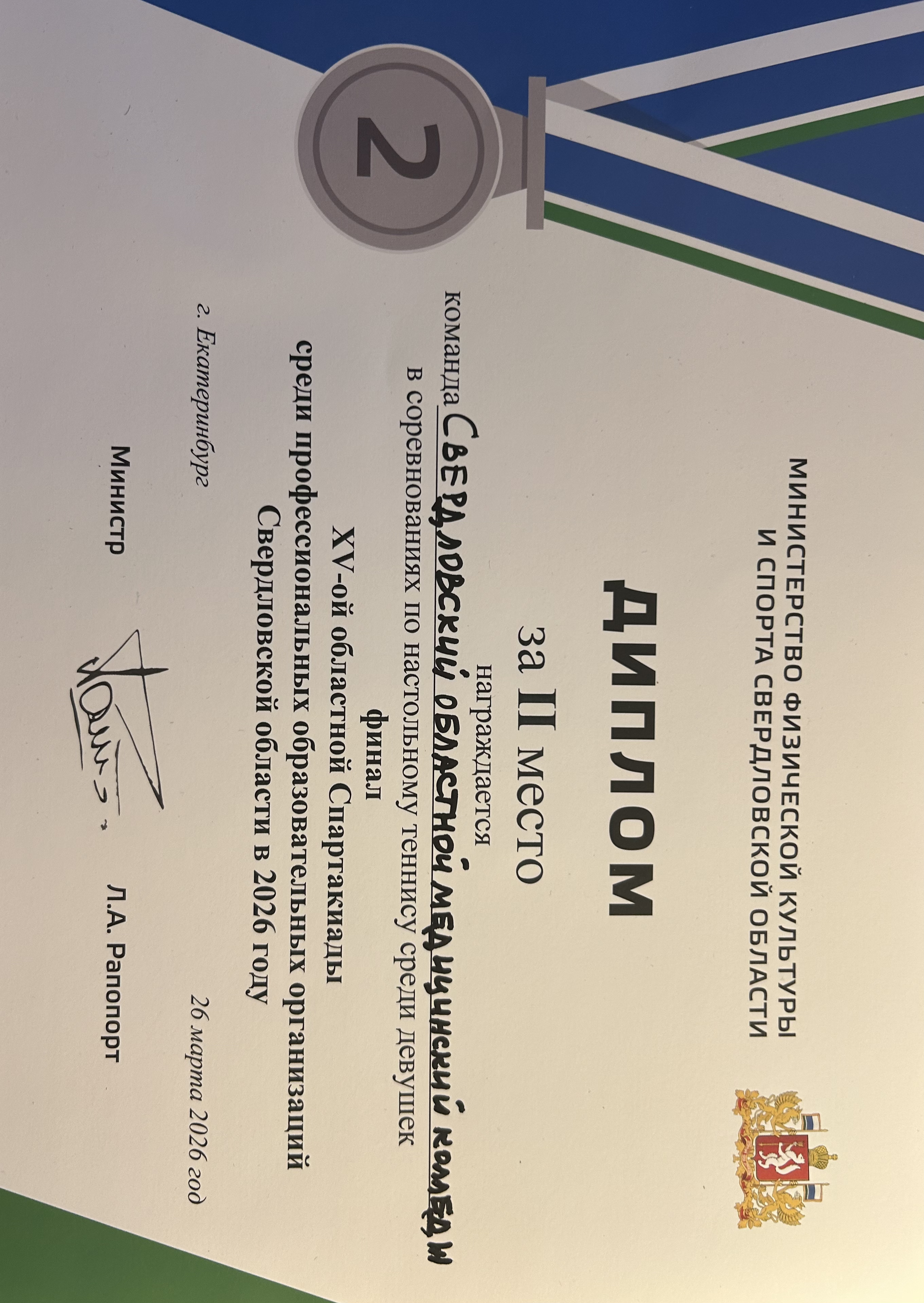 Поздравляем команду СОМК по настольному теннису!