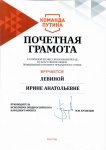 Директор колледжа И.А. Левина удостоена почетной грамоты от Руководителя исполкома общественного народного фронта М.М. Кузнецова за большой профессиональный вклад во благо жизни людей, проявленный героизм и преданность стране
