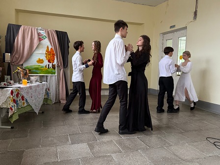 Участники и гости сразу же окунулись в атмосферу XIX века, где интерьер сцены был украшен предметами той исторической эпохи. Костюмы участников, прически и платья девушек, музыка и подготовленная презентация добавили особый колорит задуманному мероприятию.