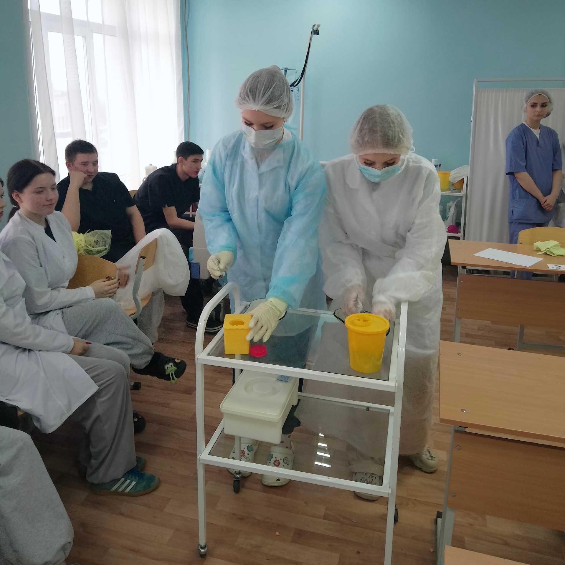 В состязании приняли участие будущие медицинские сёстры из группы 295 мс. Тема конкурса — «Секреты утилизации медицинских отходов».