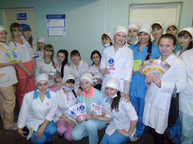 Студенты 491, 492 группы специальности «Сестринское дело» Красноуфимского филиала ГБОУ СПО «Свердловский областной медицинский колледж» приняли участие в Акции, приуроченной ко Всемирному дню борьбы со СПИДом. Обучающиеся выдавали пациентам Красноуфимской центральной районной больницы памятки, буклеты и другой информационный материал профилактической направленности, приглашали их узнать свой ВИЧ-статус.
