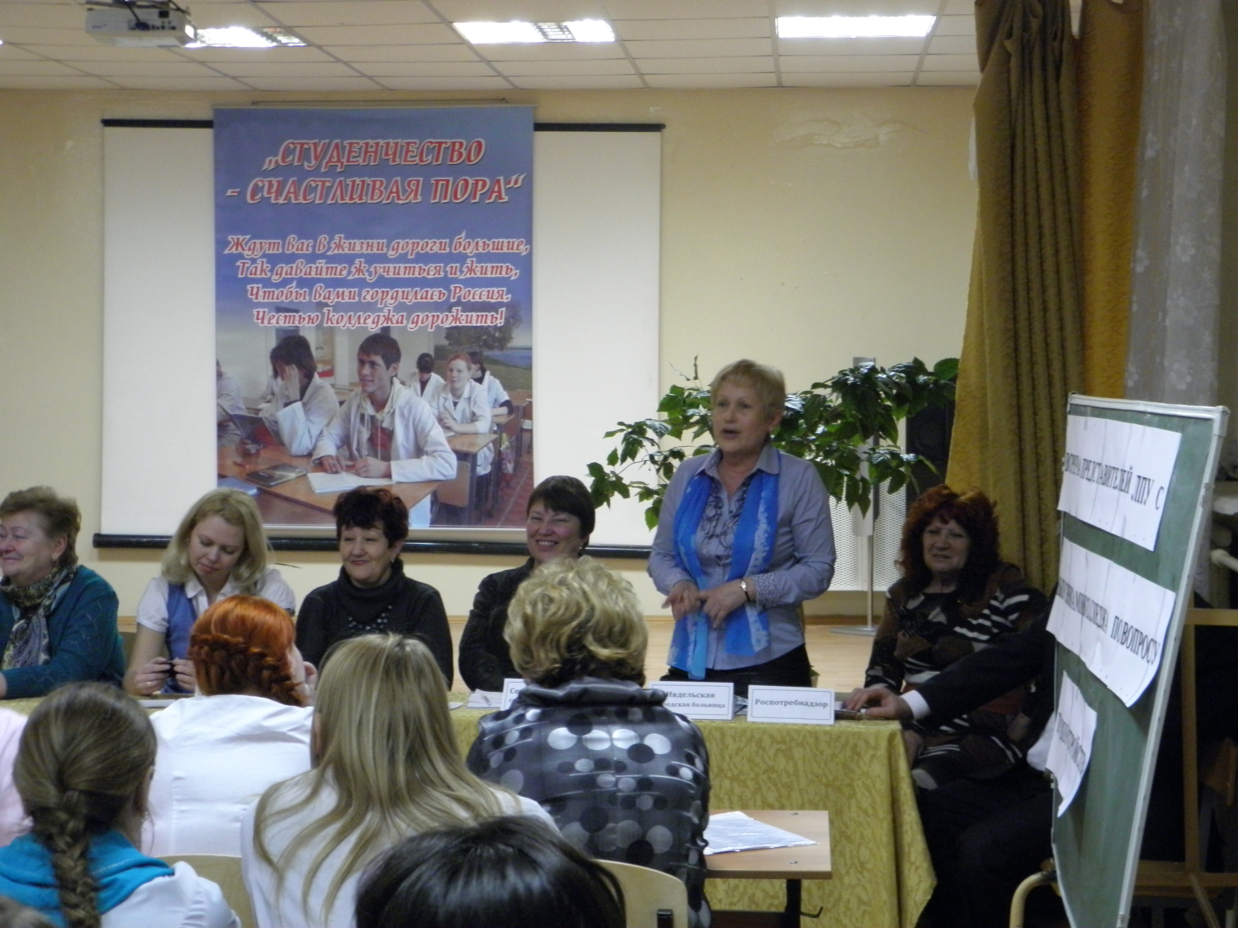 Представители г. Ивделя, г. Североуральска и г. Волчанска заинтересовано рассказали о своих лечебно-профилактических учреждениях, а особенно о медицинских работниках, стоящих на страже здоровья жителей этих городов. Все присутствующие ответили на вопросы выпускников, обсудили условия будущего трудоустройства, обменялись контактными телефонами. Работодатели поделились впечатлениями о работе выпускников прошлых лет, оформили заявки на трудоустройство нынешних выпускников.