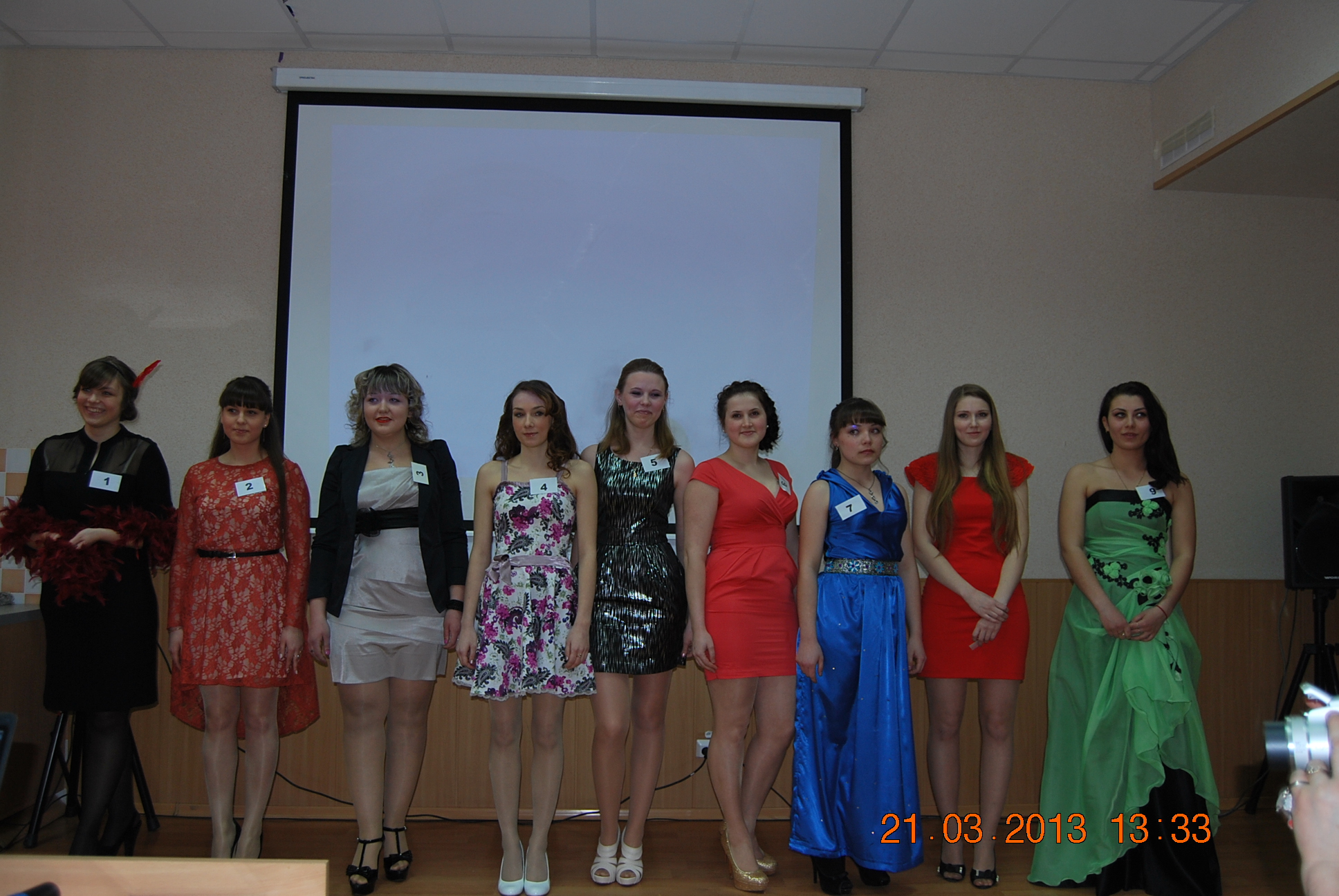 9 конкурсанток: Анна Морозова (ЗТО), Виктория Кирсанова (Ф-103), Виктория Шуруй (ЗТО), Ирина Васильева (ЗТО), Юлия Рямова (Ф-101), Анастасия Хвостова (Ф-103), Ольга Мишкина (Ф-103), Кристина Нагиева (Ф-102) боролись за корону в трех дисциплинах: визитка-приветствие, кулинарный конкурс, творческий конкурс.