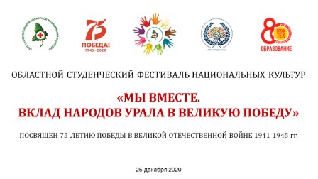 26 декабря на площадке Вебинар прошел традиционный Областной студенческий фестиваль национальных культур «Мы вместе. Вклад народов Урала в Великую Победу».