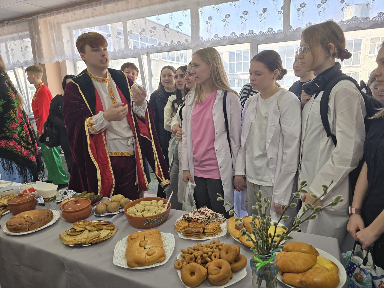 Будущие медики и спасатели на несколько часов окунулись в уникальное наследие русской культуры. Ребята угощали гостей праздника самостоятельно испеченными пирогами, куличами, пасхальными яйцами, демонстрировали национальный русский костюм, рассказывали масленичные и пасхальные традиции.