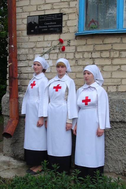 Благодарные потомки доктора Самойлова - студентки Красноуфимского филиала Свердловского областного медицинского колледжа