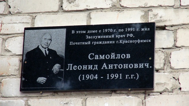 Традиционный День памяти медицинских работников Красноуфимского уезда, который проводится в шестнадцатый раз, прошел под знаком юбилеев основателя земской больницы М.И.Мизерова и заслуженного врача РСФСР Л.А.Самойлова.В этом году старожилу красноуфимской медицины, который отдал профессии врача 53 года, заведующему хирургическим отделением ЦРБ Л.А.Самойлову исполняется 110 лет со дня рождения. По инициативе сотрудников музея «Красноуфимская земская больница», которую поддержали глава городского округа В.В.Артемьевских и главный врач ЦРБ Д.М.Мельцов, на доме, где жил Леонид Антонович Самойлов, установлена мемориальная доска. На открытии ее присутствовали ветераны-медики, руководители больницы и города, студенты Красноуфимского филиала ГБОУ СПО «Свердловский областной медицинский колледж». Звучали воспоминания и слова благодарности замечательному хирургу. Участникам торжества также была показана слайдовая презентация и подарена брошюра о жизни доктора.