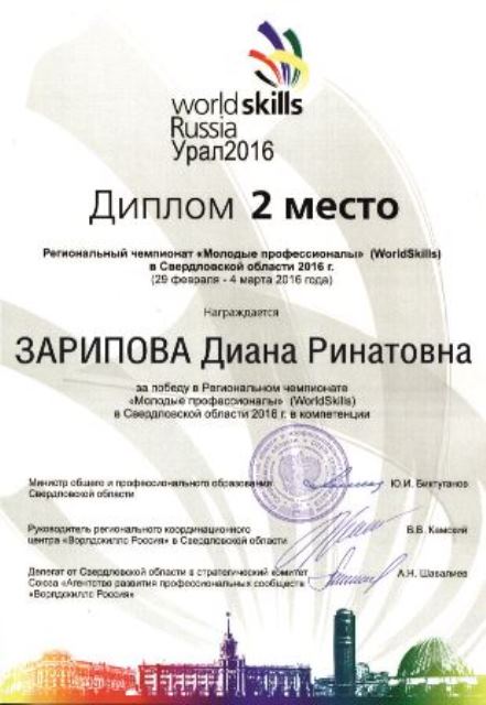 Состоялся IV региональный этап национального чемпионата «МОЛОДЫЕ ПРОФЕССИОНАЛЫ» (WORLD SKILLS URAL) в Свердловской обасти в 2016 г.